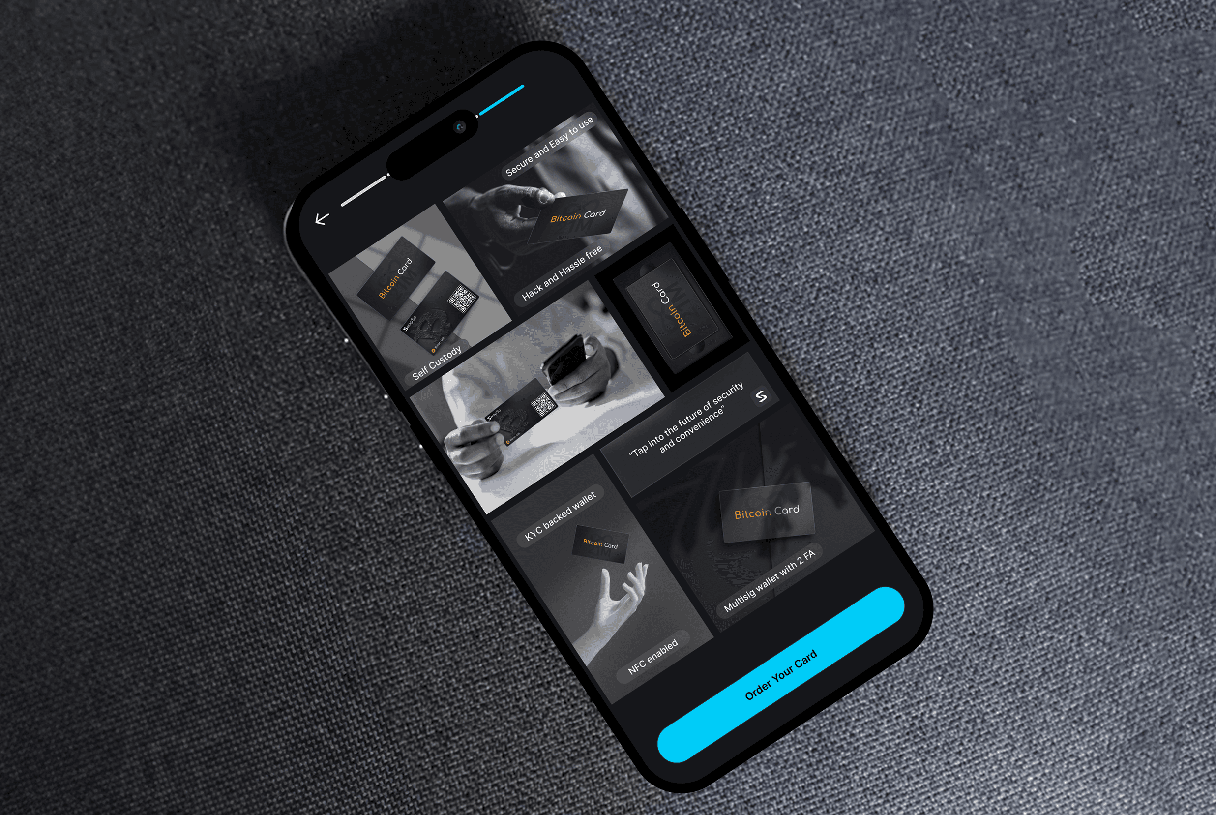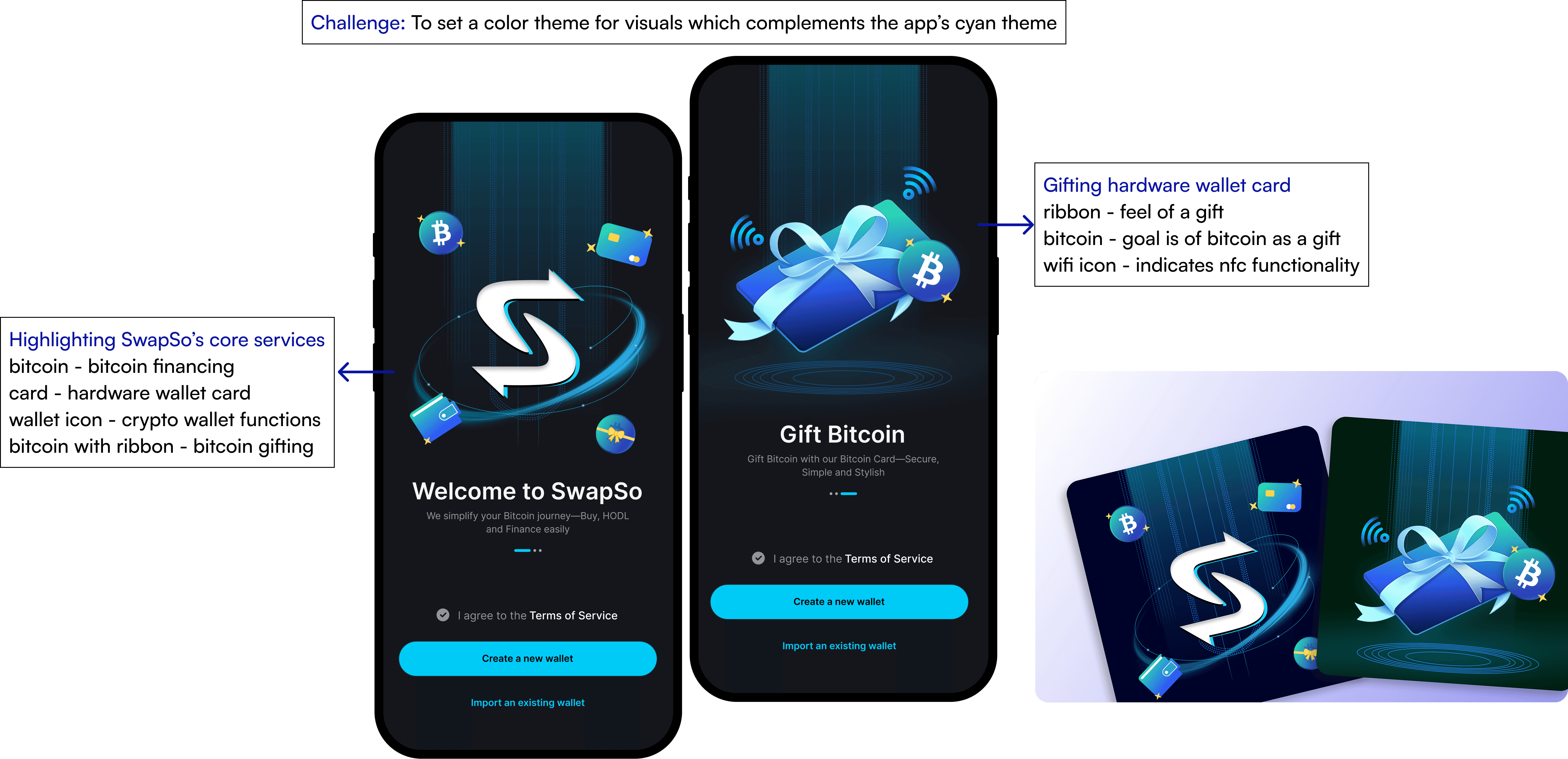 To design an engaging Bitcoin financing app with captivating visuals, incorporating user feedback through thorough research to ensure smooth app flow and easy understanding at a glance, while adding hardware wallet mockups to enhance user engagement and interaction.